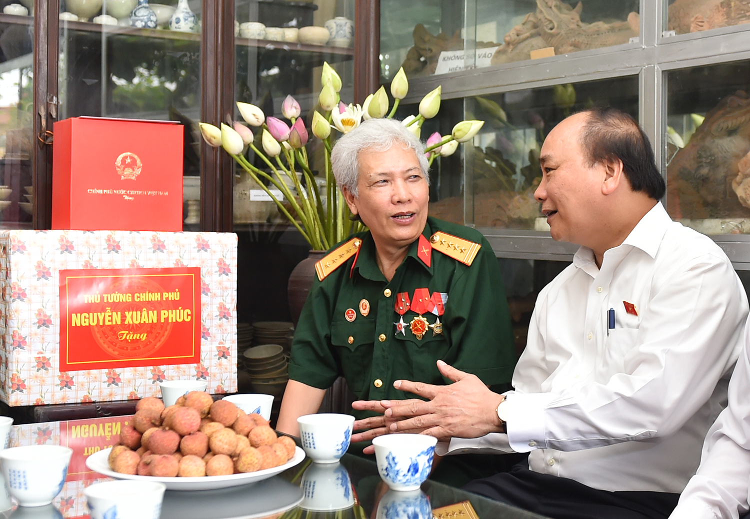 Thủ tướng Nguyễn Xuân Phúc thăm Đại tá Phan Quốc Dũng, thương binh hạng 2/4, hiện là Chủ tịch Hội Nạn nhân Chất độc da cam quận Hồng Bàng, TP. Hải Phòng. Ảnh: VGP/Quang Hiếu |