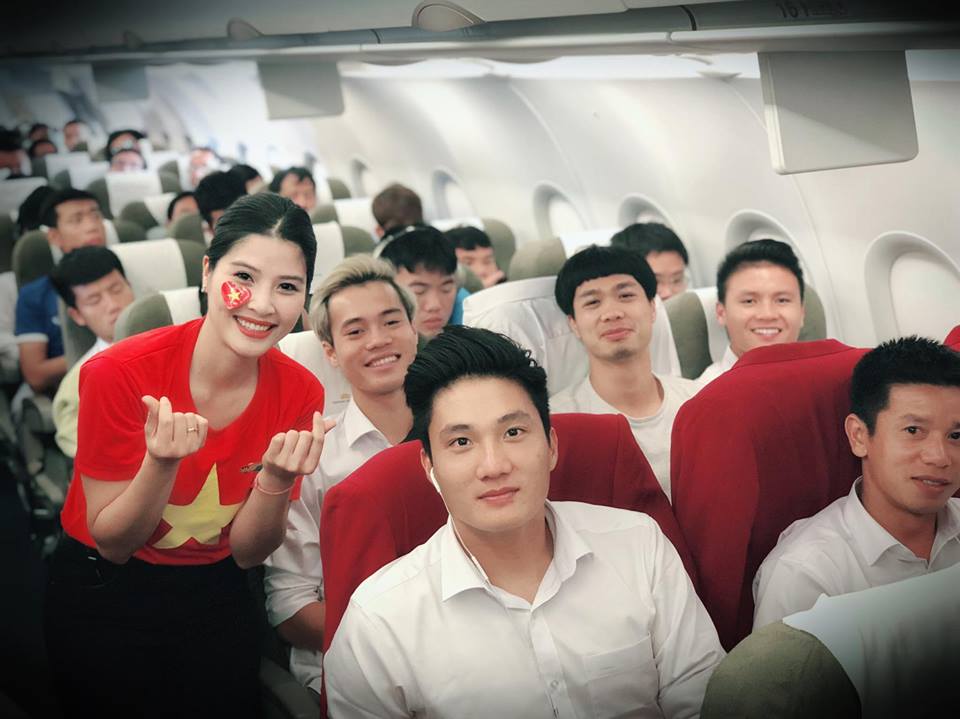 “Đây là chuyến bay hết sức đặc biệt và đáng nhớ đối với chúng tôi. Vì tất cả thành viên phi hành đoàn đều là fan hâm mộ của đội tuyển. Tôi coi đây như là một vinh dự trong công việc”, nữ tiếp viên hàng không xinh đẹp Trà My chia sẻ thêm về cảm xúc của mình sau chuyến bay.