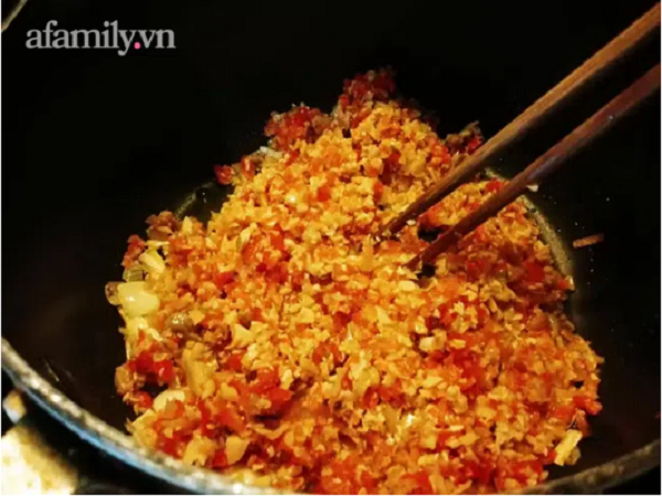 - Bước 3: Cho dầu vào nồi và cho boaro xắt nhỏ rồi thêm gừng xào thơm lên sau đó cho nấm và ớt phần xay mịn vào xào tiếp.