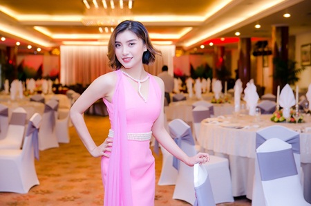 Chiều 10/8, Tiêu Châu Như Quỳnh có mặt khá sớm trong buổi trình diễn tại một khách sạn 5 sao sang trọng bậc nhất thành phố Hồ Chí Minh. Đây là sự kiện dành cho những nhà lãnh đạo hàng đầu, vì thế giọng ca họ Tiêu ăn mặc lịch thiệp, nữ tính.