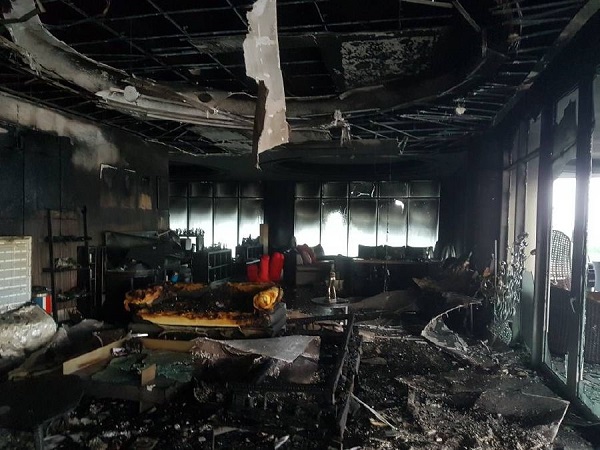 Hiện trường vụ cháy căn hộ tầng 35 tại chung cư khu vực đảo Penang - Ảnh: NST |