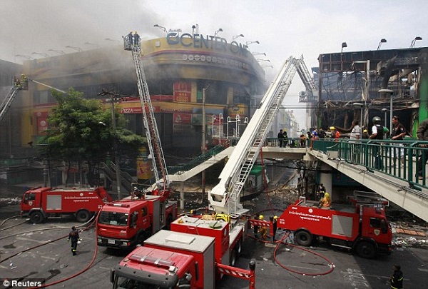Hiện trường vụ cháy một trung tâm thương mại tại Thái Lan năm 2010 - Ảnh: DailyMail |