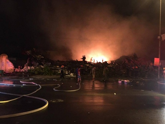 Ngọn lửa lớn bao trùm khu chợ, thiêu rụi nhiều hàng hóa. |