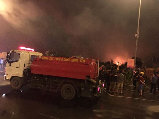 Nhận được tin báo, lực lượng chức năng tỉnh Hưng Yên đã huy động lực lượng đến hiện trường tập trung chữa cháy.