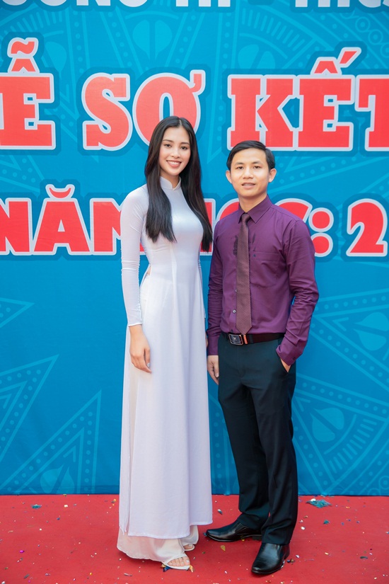 Về bản thân mình, Hoa hậu Tiểu Vy rất vui mừng khi gặp lại các thầy cô giáo, đặc biệt là thầy chủ nhiệm đã dạy dỗ, yêu thương cô. |