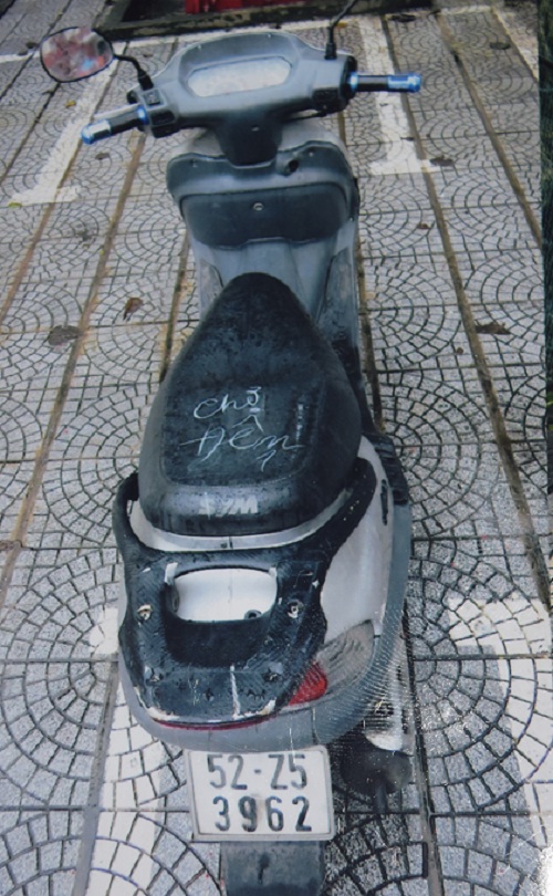 Chiếc xe máy nghi can điều khiển nhằm chạy trốn được tìm thấy ở khu vực chợ Đông Ba. |