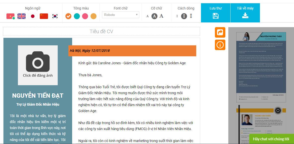 Không chỉ vậy tại timviec365.vn còn hỗ trợ cho người tìm việc cv online và tải miễn phí các mẫu CV xin việc chuyên nghiệp với 5 loại ngôn ngữ như Anh, Hàn, Nhật và Trung, ngoài ra tại đây còn phân chia các mẫu CV theo ngành nghề củng cố kỹ năng viết CV xin việc cho từng ngành cụ thể.
