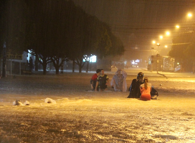 Mưa lớn khiến đường phố Biên Hòa thành sông. (Ảnh Vnexpress) |