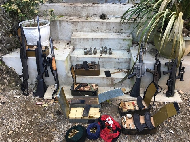 Nhà của các đối tượng được xây dựng kiên cố, có hầm thiết kế che chắn thành boongke, trong nhà tàng trữ nhiều vũ khí quân dụng, mìn, xăng, bình gas để chống đối lực lượng chức năng vây bắt.
