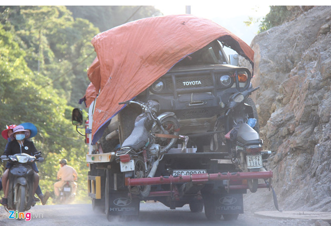 | Chiều muộn 29/6, 3 chốt cảnh sát vẫn tiếp tục chốt chặn tại 3 con đường dẫn vào bản Tà Dê. Các phương tiện giao thông qua khu vực này đều bị kiểm soát nghiêm ngặt. |