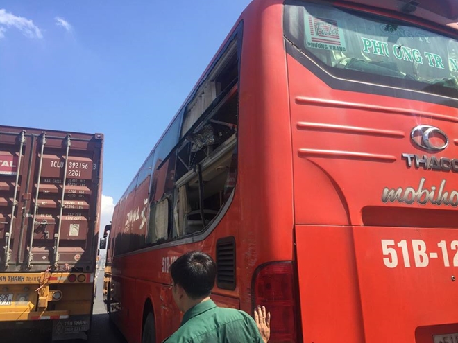 Sau va chạm giữa xe khách và xe tải nhiều hành khách hoảng loạn