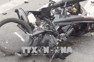 Chiếc xe máy của nạn nhân bị hư hỏng nặng. Ảnh: TTXVN |
