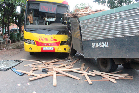 Hậu quả vụ va chạm khiến tài xế Hoàn và tài xế xe khách đều bị thương nặng kẹt trong cabin. Có ít nhất 3 hành khách ngồi ở hàng ghế đầu của xe khách bị khung sắt của xe tải đâm vỡ cửa kính văng vào người bị thương.