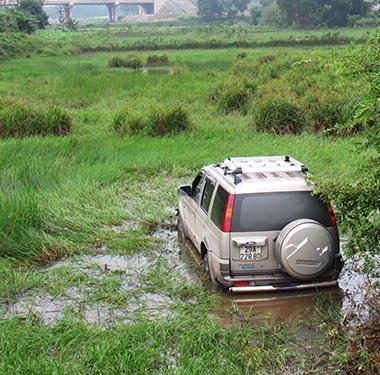Tránh xe máy, xế hộp lao thẳng xuống ruộng