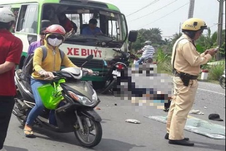 Khoảng 13 giờ ngày 13/2, xe buýt BS 63K - 3330 do tài xế Trần Thanh Nhàn (36 tuổi, ngụ H.Châu Thành, Tiền Giang) điều khiển lưu thông trên QL50 hướng từ TP.Mỹ Tho về TX.Gò Công. Khi đến đoạn qua ấp Bình Thọ Đông, xã Bình Phan, H.Chợ Gạo (Tiền Giang), xe buýt nói trên bất ngờ bị xe máy BS 63B4 - 242.14 đang lưu thông theo hướng ngược lại tông trực diện.