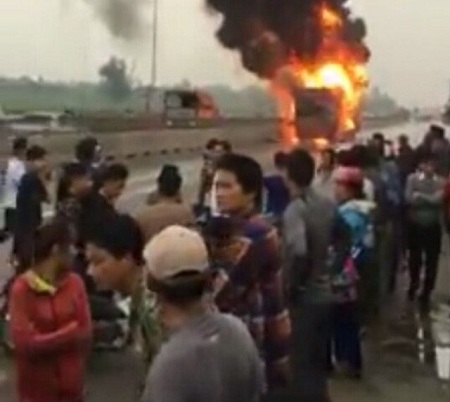 Báo Giao thông đưa tin, vào khoảng 17h30 ngày 13/4, trên QL1A, đoạn qua xóm 22, xã Nghi Trung, huyện Nghi Lộc (Nghệ An), chiếc xe khách BKS 37B - 006.70 di chuyển theo hướng Bắc – Nam. Đến đoạn đường trên xe khách bất ngờ nổ lốp, rồi bốc cháy dữ dội.