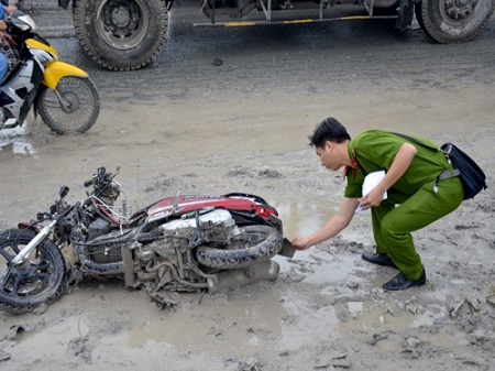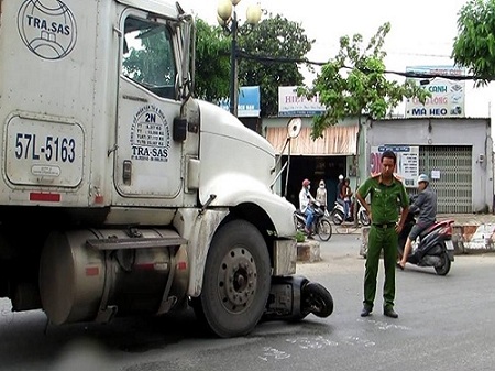 Chị A ngã xuống đường chấn thương nặng, riêng chiếc xe gắn máy bị cuốn dưới gầm xe đầu kéo bị kéo lên đi một đoạn hàng chục mét. Chị A được đưa vào bệnh viện cấp cứu nhưng do vết thương quá nặng, chị A không qua khỏi.