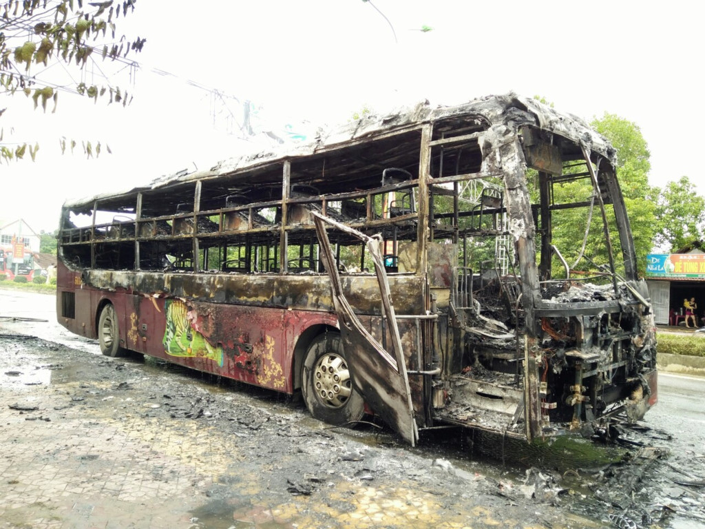 Xe khách cháy rụi sau vụ hỏa hoạn. Ảnh: Zing.vn |