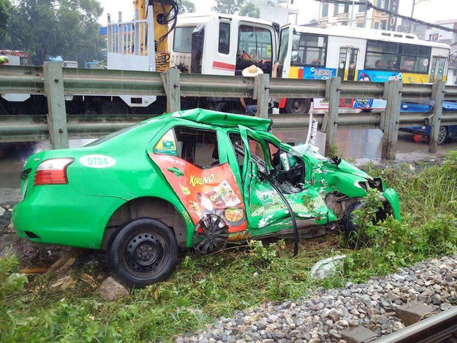 Vào thời điểm trên, chiếc taxi BKS 29A-95404 của hãng Mai Linh khi vượt đường ngang đã xảy ra va chạm với tàu hoả.