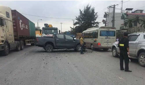 Tại hiện trường chiếc xe bán tải nằm ngang đường quốc lộ, bị gãy trục bánh trước và túi khí bị bung ra. Chiếc xe ô tô tải bị mất lái rồi lao thẳng lên vỉa hè. Rất may vụ tai nạn không thiệt hại về người, lái xe bán tải bị thương nhẹ, tuy nhiên do xe bán tải nằm giữa đường và đường hẹp nên QL18 đã bị ùn tắc cục bộ. Lực lượng CSGT sau đó đã có mặt để giải quyết vụ việc.