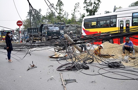 Sáng 16/12, một chiếc xe tải di chuyển trên đường Ngọc Hồi, đoạn gần cây xăng 74 thuộc địa phận huyện Thanh Trì (Hà Nội) vướng vào cáp viễn thông gây đổ gãy nhiều cột đèn chiếu sáng, cột mắc cáp thông tin liên lạc nằm trên dải phân cách. Sau khi sự cố xảy ra, các đơn vị quản lý cáp viễn thông đã huy động xe cẩu đến nâng đỡ các bó cáp bị đứt, rơi xuống đường và dựng lại các cột đỡ. Điện lực đã tạm ngừng cung cấp điện cho khu vực này để phục vụ công tác giải quyết sự cố.