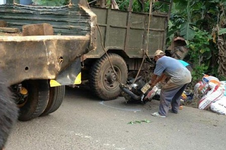 Người ngồi phía sau xe máy đã kịp thời nhảy ra khỏi xe, tuy nhiên người điều khiển xe thì bị bánh trước xe tải chèn ngang chân bị thương khá nặng. Ngay sau khi vụ tai nạn giao thông xảy ra, những người dân cùng với tài xế xe tải đã đưa người bị thương đi cấp cứu.