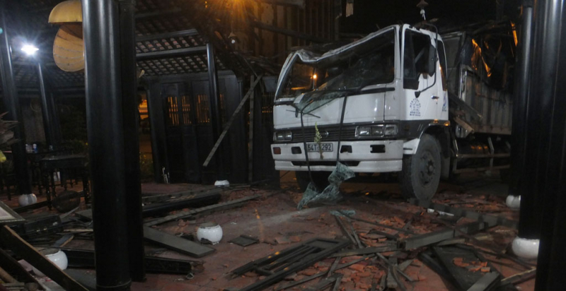 Cú tông mạnh khiến một phần nhà gỗ lợp ngói phía trước nhà hàng bị hư hỏng, ca bin xe tải hư hỏng nặng, tài xế bị thương nhẹ. Một người dân ở khu vực nhà hàng cho biết, rất may, vụ tai nạn xảy ra vào lúc nửa đêm, nếu xảy ra ban ngày thì hậu quả khó lường.