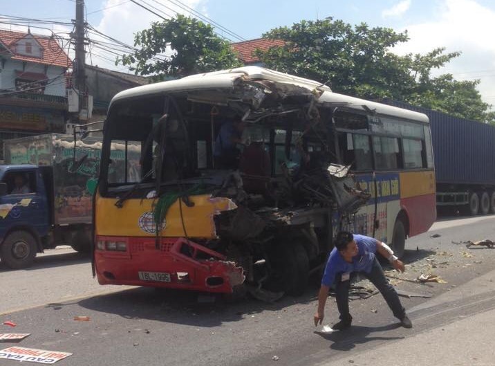 Vào thời điểm trên, chiếc xe buýt hiệu Thịnh Hưng mang BKS 16L-1995 đang di chuyển theo hướng Hải Phòng - Uông Bí (Quảng Ninh) bất ngờ mất lái đâm trực diện vào phía thành xe container mang BKS 15C-172.23 đi theo chiều đối diện.