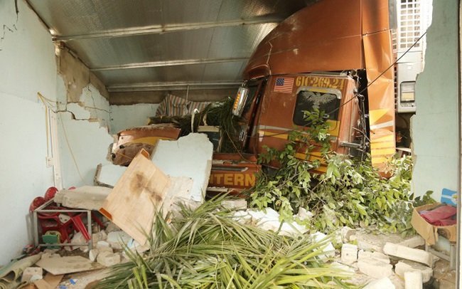 Xe container lao vào nhà dân, 3 người thoát chết