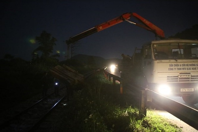 Đến gần 24h, tàu hàng đã được kéo khỏi hiện trường. Lực lượng công nhân đã rất nỗ lực để thay thế, sửa chữa các thanh tà vẹt bị bung, gãy để đảm bảo thông tuyến, đến khoảng 0h30 ngày 19/2 đường sắt qua khu vực này đã bắt đầu thông trở lại.