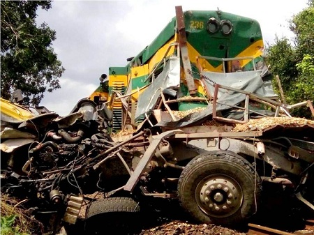 Tàu hỏa tông nát bét xe tải, xe cẩu lớn nỗ lực thông đường sắt