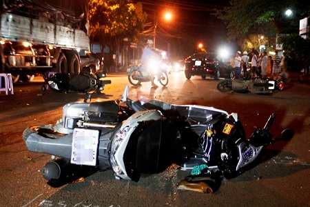 Tai nạn xảy ra lúc 19h ngày 19/3, trên đường Y Moan, phường Tân Lợi, TP Buôn Ma Thuột (Đắk Lắk) giữa ôtô và 3 xe máy.