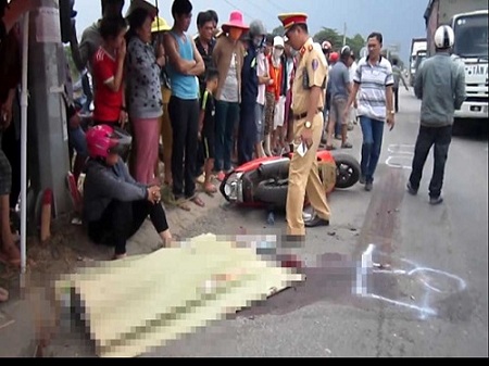 Khi đến địa điểm xảy ra vụ tai nạn giao thông, xe máy va chạm với xe tải mang BS 77C - 089.65 do tài xế Cao Trí Nhân (33 tuổi, ngụ Bình Định) điều khiển, lưu thông cùng chiều phía sau.