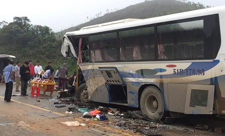 Vào khoảng 1h sáng ngày 20/3, xe khách biển số ở TP HCM lưu thông trên đường Hồ Chí Minh hướng Hà Nội - Nghệ An, khi đến địa bàn xã Xuân Hòa, huyện Như Xuân, tỉnh Thanh Hóa bất ngờ xảy ra va chạm với một xe tải biển số Nghệ An, lưu thông hướng ngược lại.