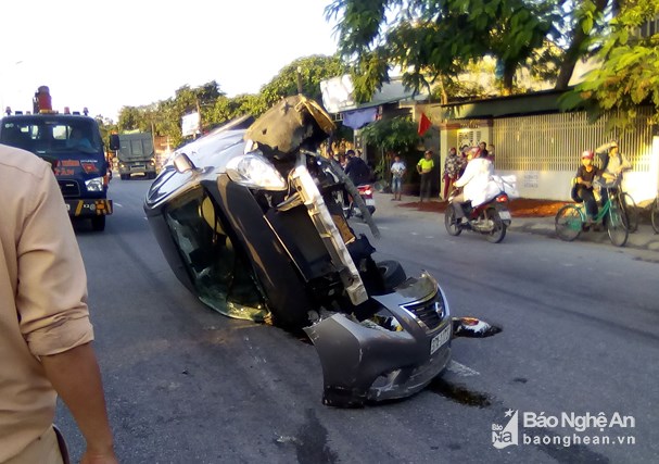 Theo đó, vào thời gian trên, chiếc xế hộp BKS 37A - 117.31 đang lưu thông theo hướng Vinh - Diễn Châu. Khi đến đoạn đường trên, do không làm chủ được tay lái nên chiếc xe đã đâm vào dải phân cách và bị lật nhào nằm phơi bụng giữa đường.