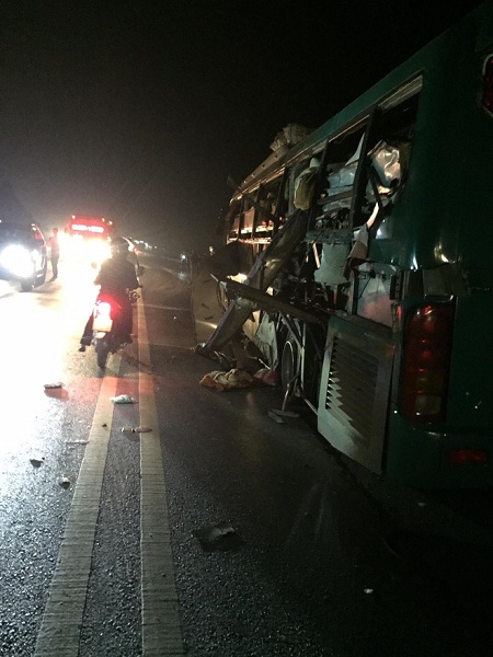 Hậu quả khiến toàn bộ phần vỏ bên trái của chiếc xe giường nằm bị vỡ tan, hở hết giường bên trong. Phần đầu chiếc xe cũng hư hỏng nặng.