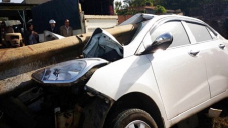 Khi chạy qua địa phận xã Tam Bố (huyện Di Linh, Lâm Đồng), chiếc ô tô tông trực diện vào thanh chắn đường nên bị thanh chắn găm thẳng từ đầu đến đuôi xe. Hậu quả, đầu ô tô dập nát, càng xe bị gãy, cản trước bị vỡ, nội thất xe hư hỏng nặng.