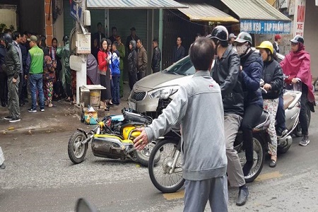 Vào thời điểm trên, chiếc ô tô mang BKS: 30A – 692.36 đang lưu thông trên đường Trương Định theo hướng Giáp Bát sang chợ Mơ, khi đến đoạn giao cắt với đường Hoàng Mai thì bất ngờ tông vào một chiếc xe máy chở hàng cùng chiều rồi tiếp tục tông vào một chiếc xe máy hiệu Attila bay lên vỉa hè.