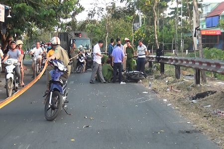 Khoảng 14h ngày 22/2, Huỳnh Tuấn Nhu (24 tuổi, ngụ Bình Hưng Hoà, quận Bình Tân, TP Hồ Chí Minh) điều khiển xe máy BKS 50N1-326.53 lưu thông trên đường Kênh Nước Đen đến trước số nhà 6/6/30 Kênh Nước Đen, phường Bình Hưng Hòa A, Bình Tân thì tông xe vào ta-luy bằng sắt bảo vệ đoạn kênh dọc tuyến đường này.