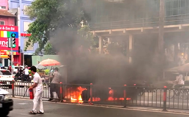Khi còn cách giao lộ Lê Hồng Phong khoảng 20 m (quận 10), chiếc xe bất ngờ phát hỏa, cháy ngùn ngụt. Tài xế phát hiện kịp thời, bung cửa thoát ra ngoài hô hoán. Nhiều người dân sống xung quanh cầm bình chữa cháy mini, xô nước hỗ trợ, dập tắt đám cháy.