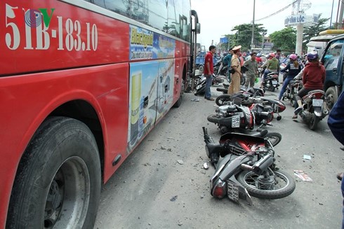 Xe khách "nuốt" 7 xe máy dừng đèn đỏ, 3 người nguy kịch