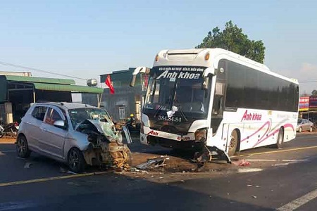 Vào khoảng 16h ngày 24/2, trên đường Hồ Chí Minh (đoạn qua xã Quảng Thành, thị xã Gia Nghĩa, tỉnh Đắk Nông) đã xảy ra một vụ TNGT giữa xe ô tô 4 chỗ và xe giường nằm khiến 3 người ngồi trên xe ô tô 4 chỗ bị thương nặng.