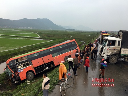 Khi đi đến đường tránh TP Vinh, địa phận xã Hưng Đạo (Hưng Nguyên) thì va chạm với chiếc xe tải do tài xế Phạm Viết Cường (45 tuổi, trú tại phường Quán Bàu, TP Vinh) điều khiển chạy chiều ngược lại.