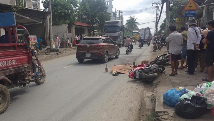 Vào thời điểm trên, chị Hoàng Thị Lân (ngụ quận Bình Thạnh) chạy xe máy mang BKS 59 S2 - 747.16 trên đường Nguyễn Duy Trinh, hướng từ vòng xoay Phú Hữu về đường Nguyễn Xiển. Đang chạy xe trên đường, chị Lân bị một xe container ép vào lề nên phải phanh gấp. Lúc này, người đàn ông chạy xe tay ga mang BKS 59 K2 - 136.64 từ phía sau không xử lý kịp nên tông vào đuôi xe máy của chị Lân.