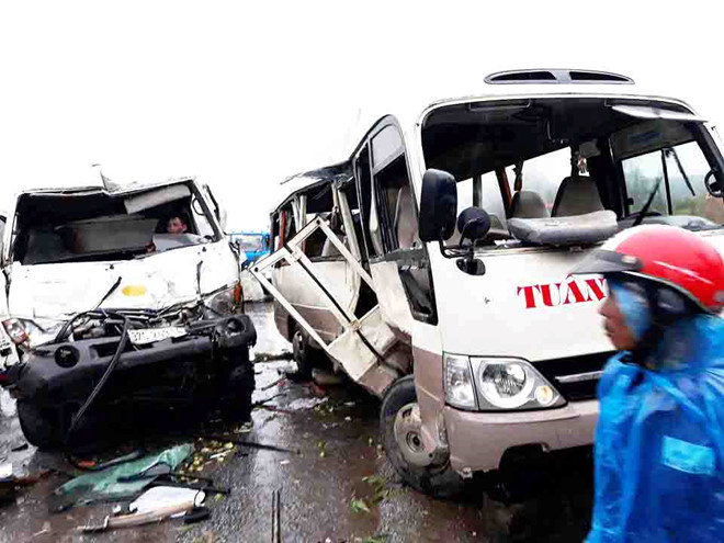 Chưa dừng lại, chiếc xe lao sang làn đường ngược chiều. Đúng lúc đó, chiếc xe bồn BKS 37C - 249.14 chạy tới, 2 chiếc xe đâm vào nhau với lực mạnh. Khi xảy ra tai nạn, trên xe khách có 7 người, cú đâm mạnh khiến 4 người trên 2 xe bị thương nặng. Tài xế xe bồn bị mắc kẹt trong cabin, sau đó được lực lượng cứu hộ phá cửa đưa ra ngoài.