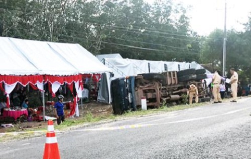 Vụ tai nạn khiến 3 người bị thương nặng. Tại hiện trường, chiếc xe bị lật ngang vào rạp đám cưới khiến những người khách còn lại bỏ chạy tán loạn.