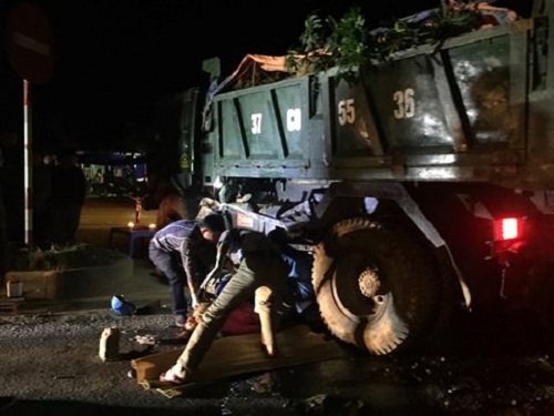 Cú va chạm mạng khiến hai mẹ con đi xe máy ngã vào gầm xe tải. Hậu quả, người mẹ bị xe cán tử vong tại chỗ, người con bị thương nặng.