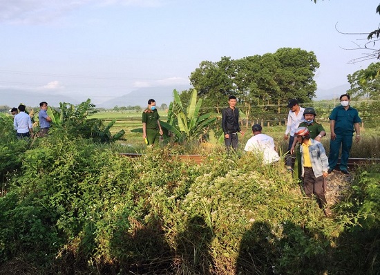 Công an huyện Hòa Vang phối hợp với các đơn vị liên quan đến khám nghiệm hiện trường.