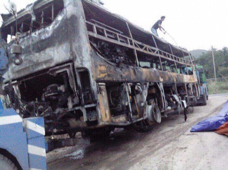 Xe khách bốc cháy trong đêm, hơn 10 thượng đế thoát nạn