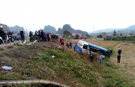 Theo các nhân chứng, vào thời điểm trên, ô tô khách mang biển kiểm soát: 15B - 008.23 đang di chuyển trên Quốc lộ 1, đến đoạn đường trên thì bất ngờ bị nổ lốp khiến tài xế mất kiểm soát và chiếc xe cứ thế đâm qua taluy ven đường rồi lao thẳng xuống ruộng. Vào thời điểm tai nạn xảy ra, trên xe chở rất nhiều khách nhưng rất may không có thương vong về người.